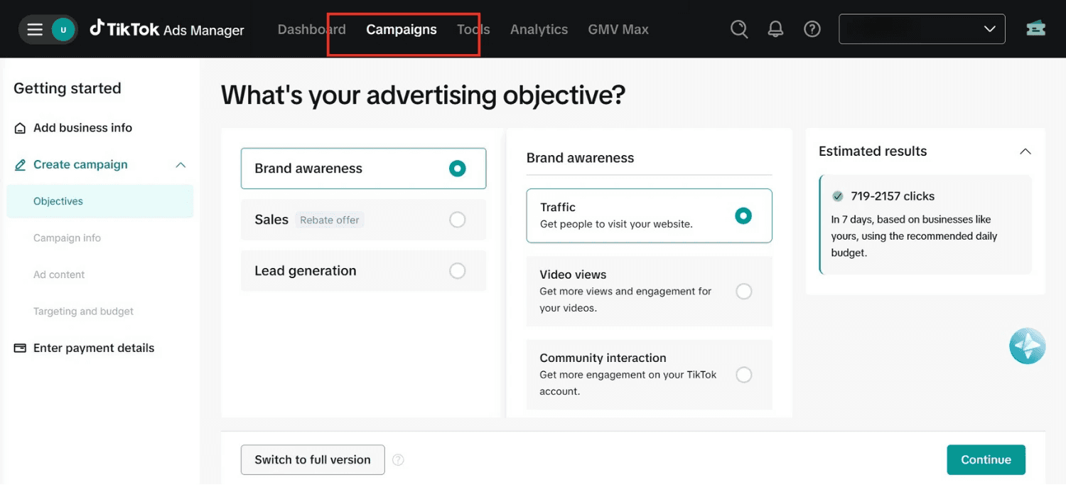 Bước 7: Tạo quảng cáo TikTok Ads